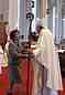 2. Entrée de Mgr Fournier tenant la main de Sara (en rouge) et de Gabrielle, de la famille «Les Enfants d'Amour» de Louise Brissette |