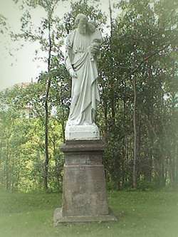 monument de marbre à sainte Anne qu'on retrouve de nos jours dans le parc de l'église.