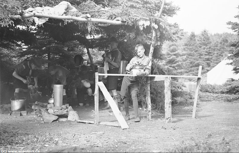 1934-07-24_09 23-31 juillet 1934. Camp scout à l'île aux Amours (Bic). La cuisine. |