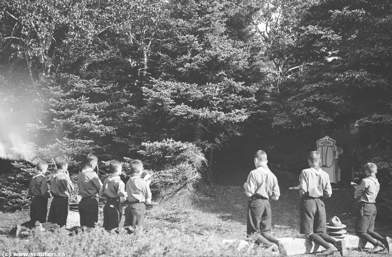 1934-07-24_15b 23-31 juillet 1934. Camp scout à l'île aux Amours (Bic). La messe au camp. |