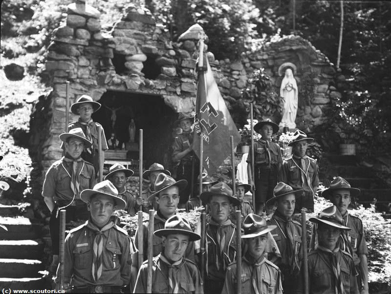 1936-07-20_08 20 juillet au 01 août 1936. Camp scout à la Pointe Mercier, Saint-Fabien-sur-Mer : 31 juillet, promesse à la Grotte près de la chapelle de Notre-Dame-des-Murailles. |