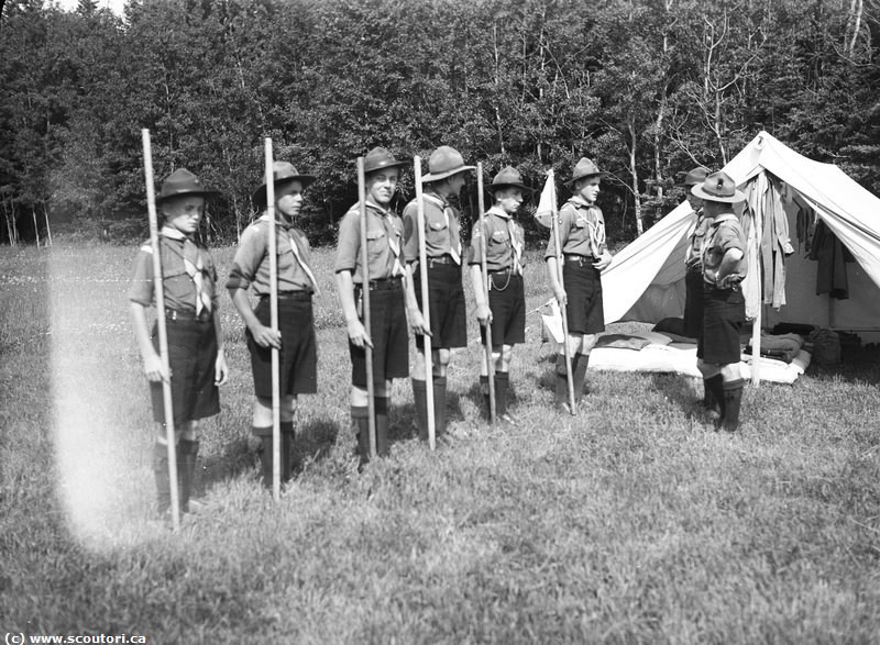 1938-07-21_05 21 juillet au 3 août 1938. Camp scout à la Pointe Mercier, Saint-Fabien-sur-Mer. L'inspection à 9h30. |