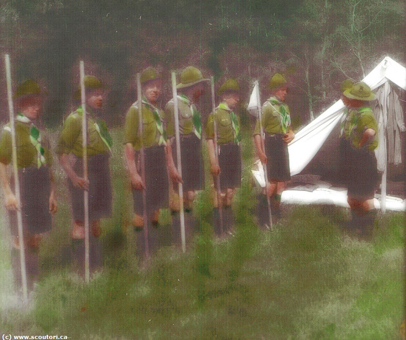 1938-07-21_06 21 juillet au 3 août 1938. Camp scout à la Pointe Mercier, Saint-Fabien-sur-Mer. L'inspection à 9h30. |