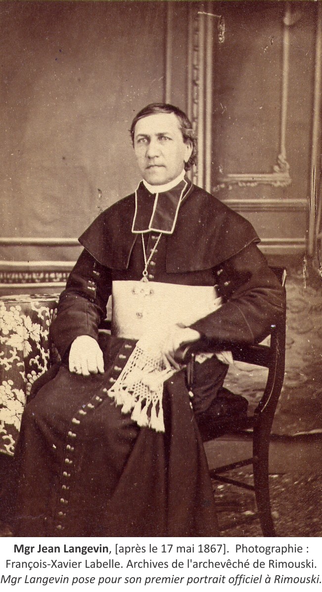 Quatre mois s’écoulent entre la nomination de Mgr Langevin et son installation à Rimouski, le siège du nouveau diocèse. Il fallait bien tenir compte de la difficulté des déplacements durant l’hiver et attendre l’ouverture du fleuve à la navigation. À Québec, pendant ce temps, on s’affaire à organiser les fêtes du sacre du nouvel évêque avec toute la pompe requise, tandis qu’à Rimouski, on se prépare à le recevoir le plus dignement possible. Fixée le premier jour du mois de mai, la consécration épiscopale est présidée par Mgr Charles-François Baillargeon, assisté de Mgr Edward John Horan, évêque de Kingston, et de Mgr Louis-François Laflèche, coadjuteur de l’évêque de Trois-Rivières. Le même jour, dans l’église de Rimouski désormais cathédrale diocésaine, le curé Pierre-Léon Lahaye prend possession du siège épiscopal au nom de son premier titulaire, Mgr Langevin.