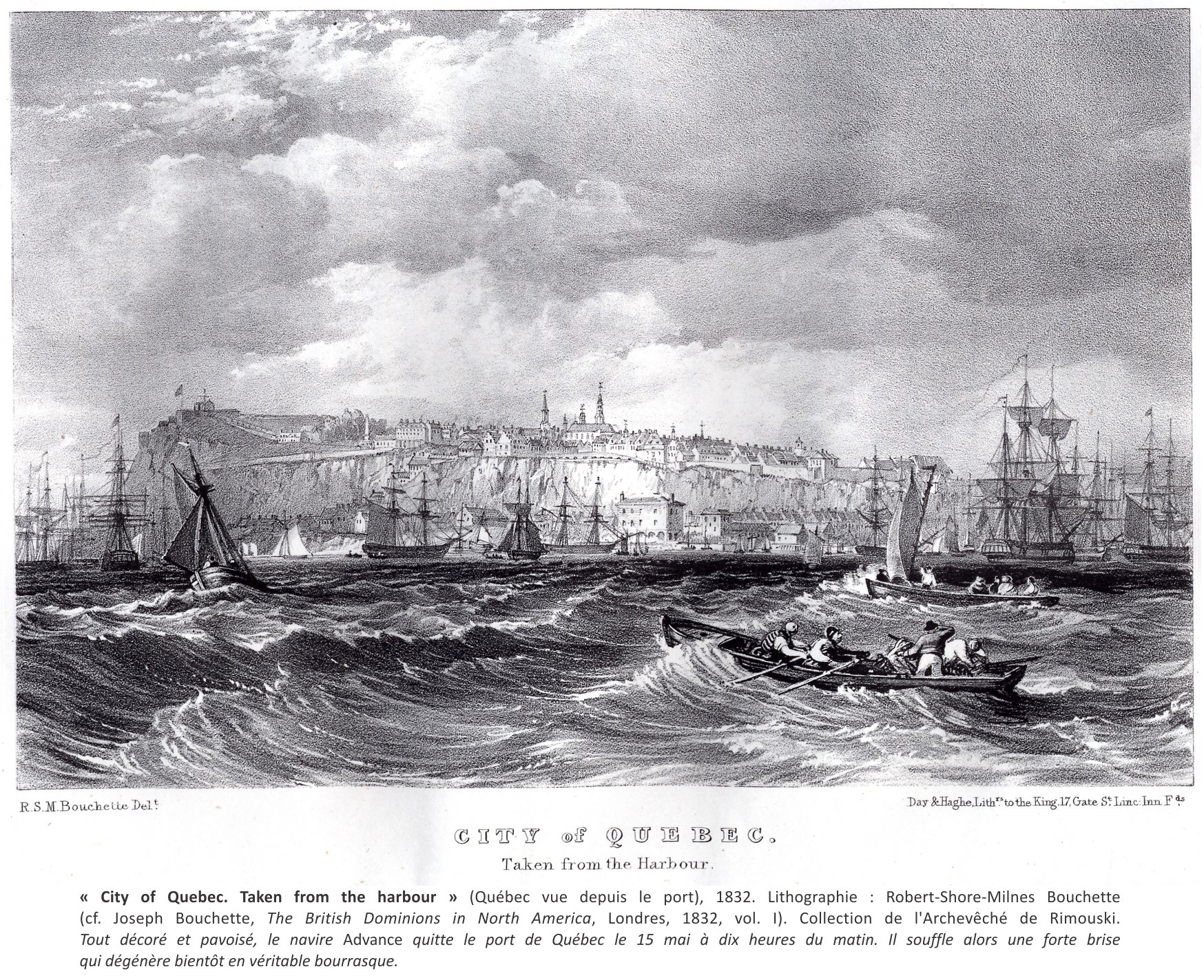 Il tardait sans doute au nouvel évêque de prendre le chemin de son diocèse. Le mercredi matin 15 mai à dix heures, celui-ci s’embarque avec l’évêque de Kingston et un groupe de dignitaires ecclésiastiques et civils au port de Québec à bord de l’Advance, un bateau à vapeur spécialement affrété pour faire le voyage. Les vents froids mêlés de pluie obligent un mouillage à l’île aux Grues pour y passer la première nuit. Par un temps toujours orageux, le navire reprend sa route le jeudi matin. Après une escale à La Malbaie, il s’arrête à Rivière-du-Loup où une douzaine de prêtres viennent se joindre aux passagers déjà à bord. Bravant la tempête, le bateau poursuit sa route, mais se voit forcé de rebrousser chemin pour passer la nuit à Rivière-du-Loup. À l’aube du vendredi matin 17 mai, le capitaine fait lever l’ancre pour effectuer la dernière étape du voyage. Malgré des vents contraires, il parvient à mener son vaisseau à destination au terme d’une véritable odyssée.