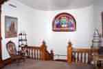 ![]() Pour se rendre à la chapelle, il faut emprunter l'escalier central, orné d'un vitrail et d'une peinture de saint Germain de Paris Agrandissement : JPG 27 Ko |