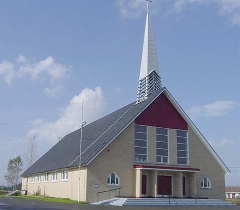 ÉGLISE L’ASCENSION-DE-NOTRE-SEIGNEUR, PATAPÉDIA. Érection civile le 4 avril 1940. Premier curé : Georges Côté. Première messe le 9 décembre 1937. Registres depuis 1937. Première chapelle en 1939. Érection canonique le 17 août 1949. Église actuelle en 1967. Revêtement de brique. Façade : est. Fête patronale : l'Ascension.