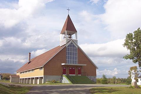 ÉGLISE SAINT-CLÉOPHAS. Érection civile le 10 mai 1921. Premier curé : Charles Pelletier, 1921. Mission en 1918. Première chapelle en 1921. Registres depuis 1921. Érection canonique le 17 janvier 1921. Incendiée en janvier 1944. Janvier 1944 : un soubassement a servi au culte jusqu’à la construction de l’église actuelle en 1964. Revêtement de brique. Façade : sud-est. Fête patronale : 25 septembre. Cette église a été vendue à la municipalité en 2013 et sert encore pour le culte.