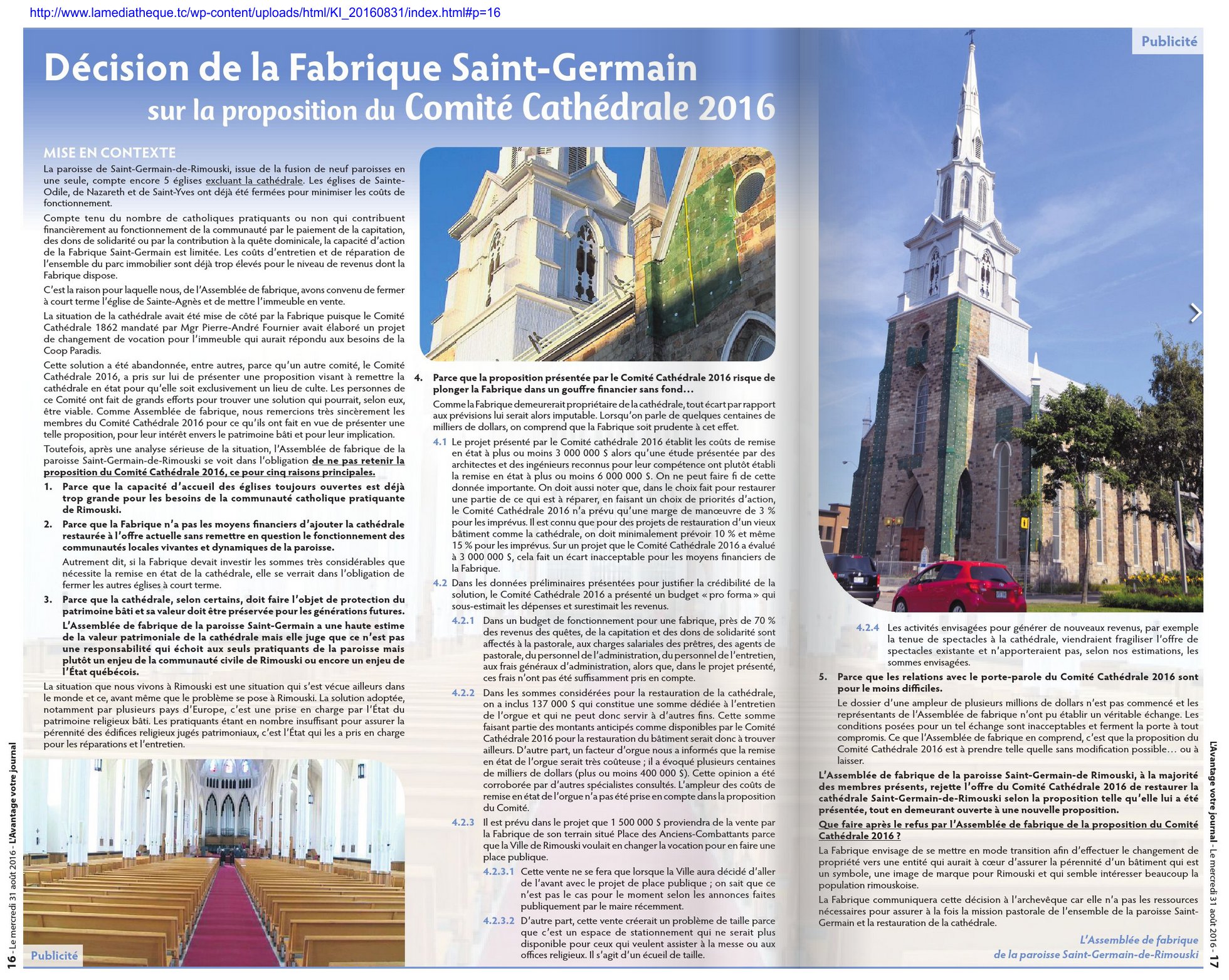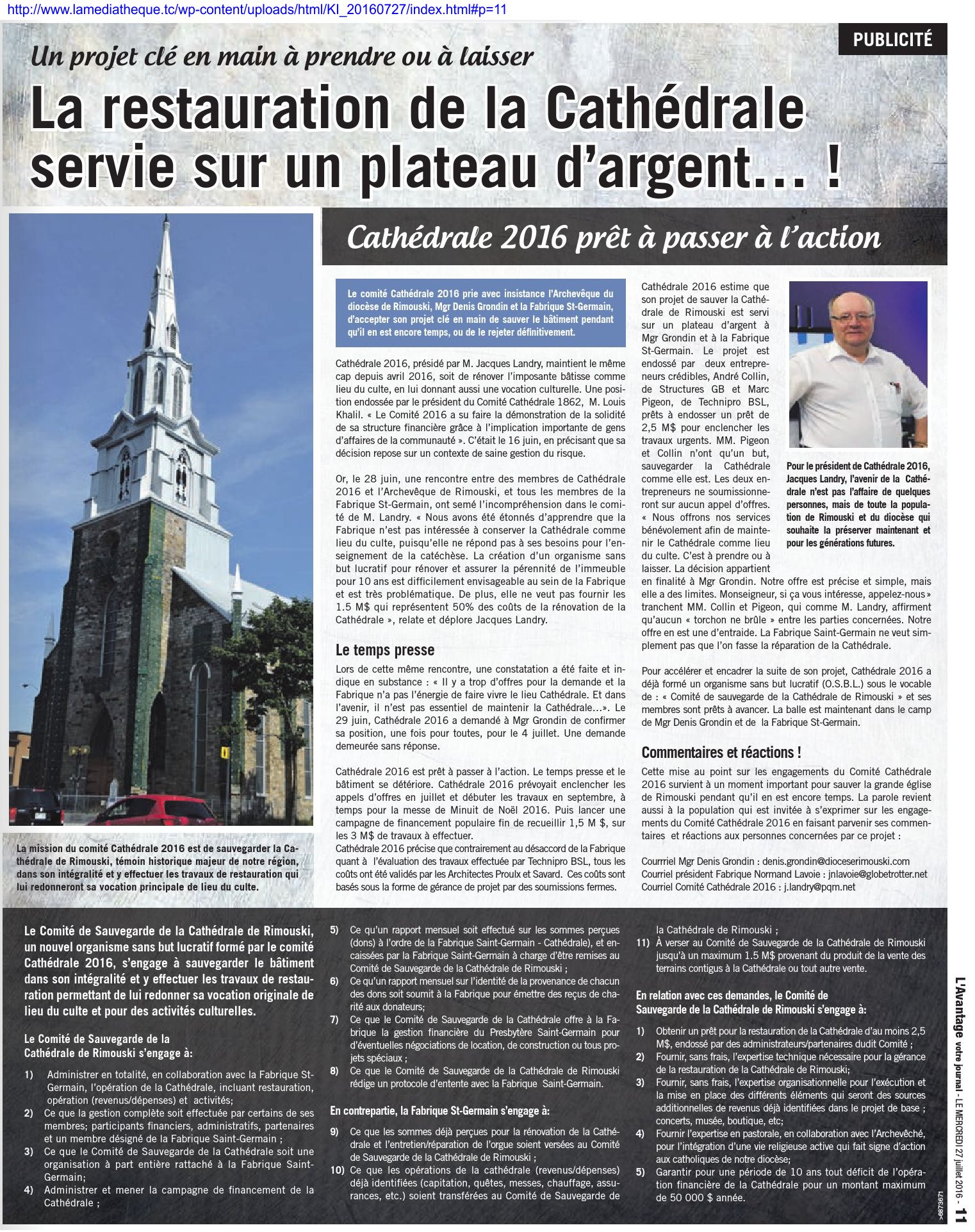 ● Un nouveau comité se penchera sur l'avenir de la cathédrale (2019-11-26)