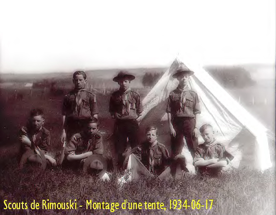 ![]() 8. Scouts de Rimouski. Premier camp d'été, à l'Île-aux-Amours, du 22 au 31 juillet 1934. |