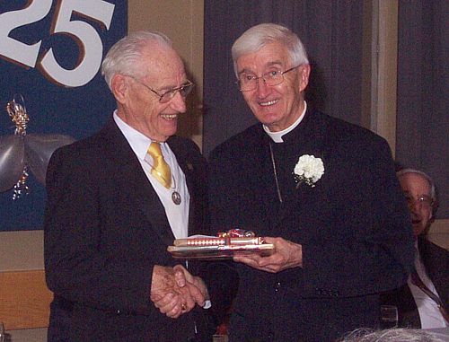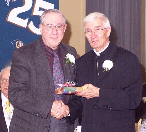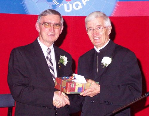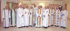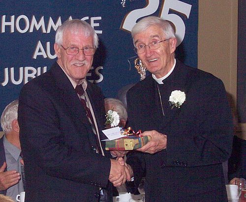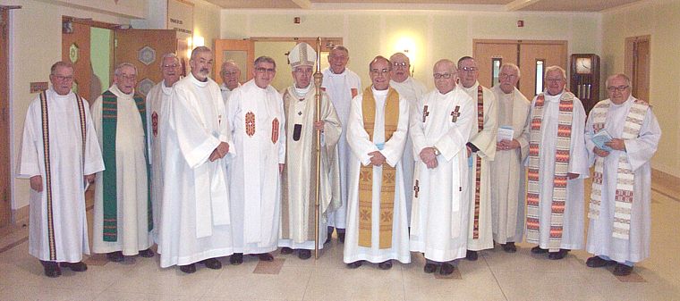 Dix-sept prêtres célébraient des anniversaires d'ordination. Voici les jubilaires présents (de gauche à droite sur la photo agrandie) : Martin Lepage (50 ans), André Caron (50 ans), Elzéar Jalbert (50 ans), Benoît Hins (40 ans), Wilfrid Desrosiers (50 ans), Paul-Émile Vignola (40 ans), Mgr Bertand Blanchet, Ghislain Gendron (50 ans), Normand Lamarre (25 ans), Nazaire Hudon (50 ans), Léopold Fournier (40 ans), Christian Paradis (50 ans), François Labrie (50 ans), Jean-Yves Leblond (50 ans) et Aubert April (50 ans).