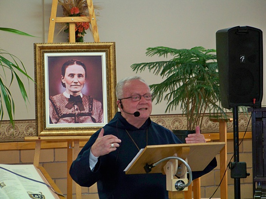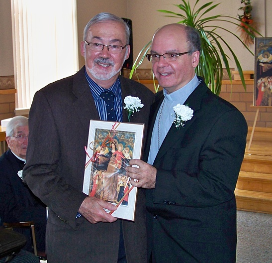 « La vie consacrée : un don à l’Église »« La vie consacrée est un don à l’Église, elle naît dans l’Église, croît dans l’Église, et est toute orientée vers l’Église1 ». C’est pourquoi, en tant que don à l’Église, elle n’est pas une réalité isolée ni marginale, mais elle lui appartient intimement. Elle est au cœur de l’Église comme un élément décisif de sa mission, en tant qu’elle exprime l’intime nature de la vocation chrétienne et la tension de toute l’Église Épouse vers l’union avec l’unique Époux; donc elle « appartient… sans conteste à sa vie et à sa sainteté » (Lumen gentium, n. 44). C'est sous ce thème que s'est déroulée, le 7 octobre 2015, en la fête de Notre-Dame du Rosaire, la 38e Assemblée annuelle des prêtres au Grand Séminaire de Rimouski. Cette rencontre, qui regroupait une cinquantaine de prêtres, fut l'occasion de célébrer le jubilé sacerdotal de plusieurs d'entre eux. En avant-midi, nous avons accueilli un conférencier invité, Mgr Yvon Joseph Moreau, o.c.s.o., Évêque du diocèse de Sainte-Anne-de-la-Pocatière, qui est venu nous entretenir de la vie consacrée. L'après-midi a été l'occasion de fêter les jubilaires par une période d'hommages suivie d'une célébration eucharistique qui a eu lieu dans la chapelle du Grand Séminaire. Le tout fut suivi d'une réception pour les jubilaires. (Photos : Yves-Marie Mélançon. Cliquez sur une photo pour son agrandissement.)